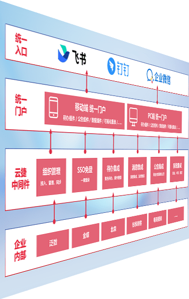 对协作平台提供支持服务,,支持企业应用与协作平台对接,,包含组织同步、、、消息集成、、待办集成等。。支持目前主流的协作平台:钉钉、、、、企微和飞书。。