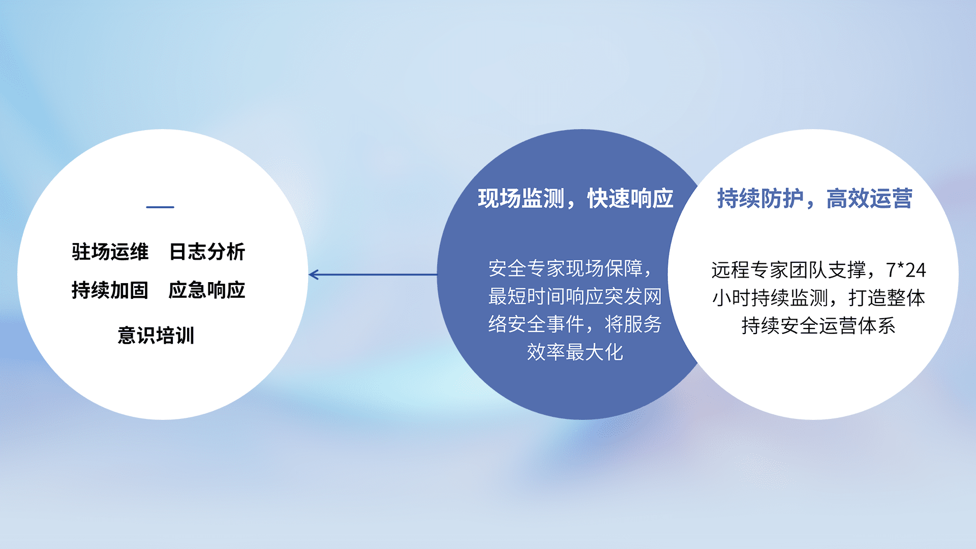 7X24小时持续监测安全事件,保持安全策略有效性,降低资产脆弱性风险,,精准拦截黑客攻击,,,减少被黑客利用的机会,,第一时间遏制,,,降低损失。。。